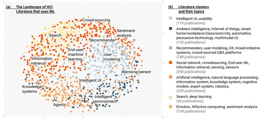 Анализ научных работ на стыке Human-Computer Interaction и Machine Learning, 2018 год. Источник: Mapping Machine Learning Advances from HCI Research to Reveal Starting Places for Design Innovation